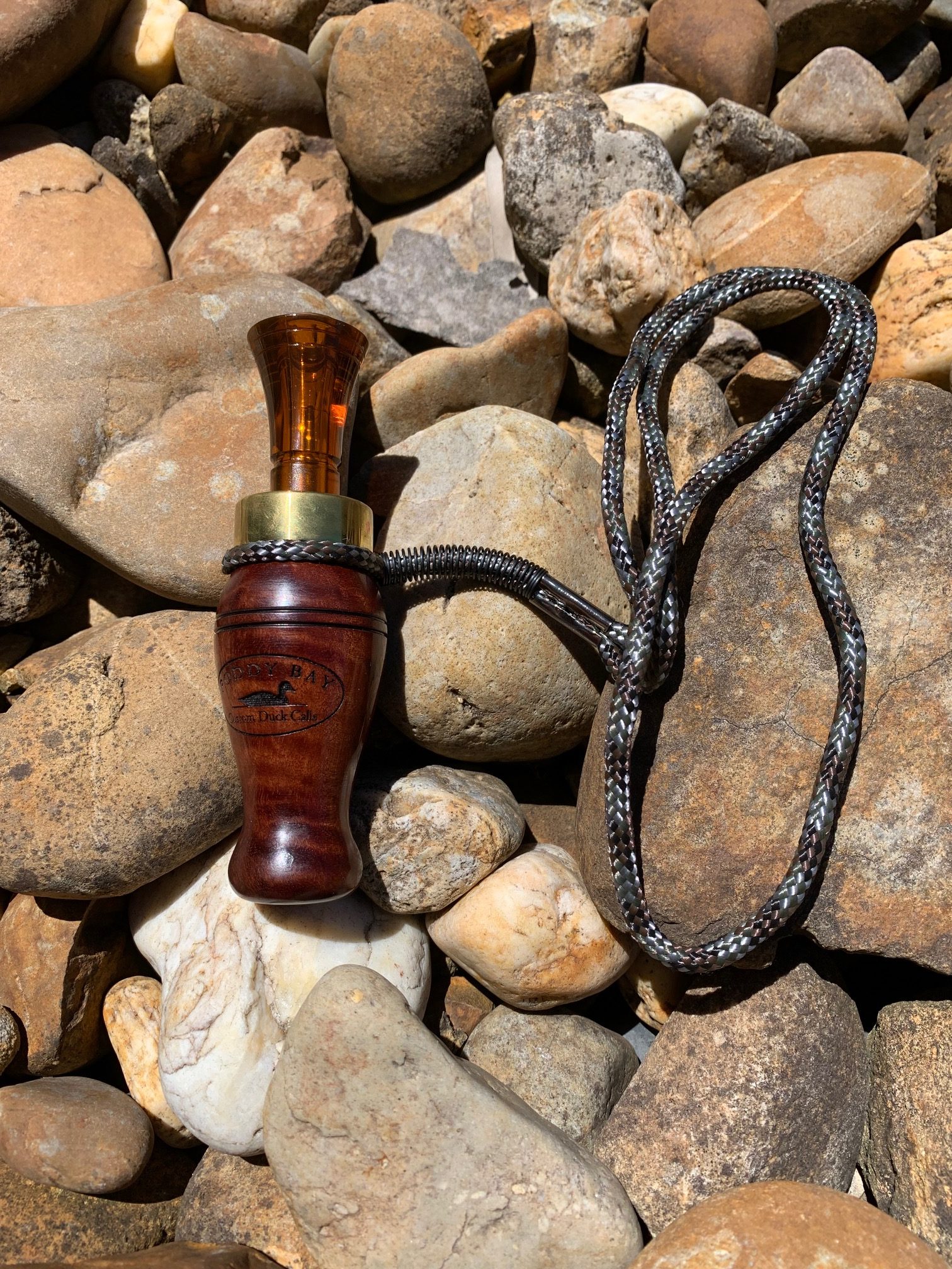 The Swamp Master Timber Black Duck Caller is a handcrafted red gum timber caller with a long range double reed insert that produces a loud raspy call that is dynamite on wary black ducks. Call components are turned, assembled, tuned and packaged in a presentation style “nest box” by Poddy Bay Custom Duck Calls in Victoria, Australia. Every Swamp Master Timber Black Duck Caller is hand tuned for optimum performance on Black Ducks and Mallards in NZ – it is perfect for the hunter who needs a long range call for open water and large swamp hunting. Each caller comes with a complimentary camouflage lanyard.